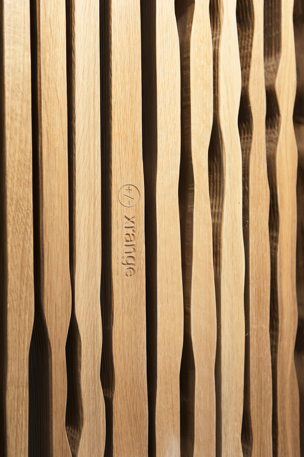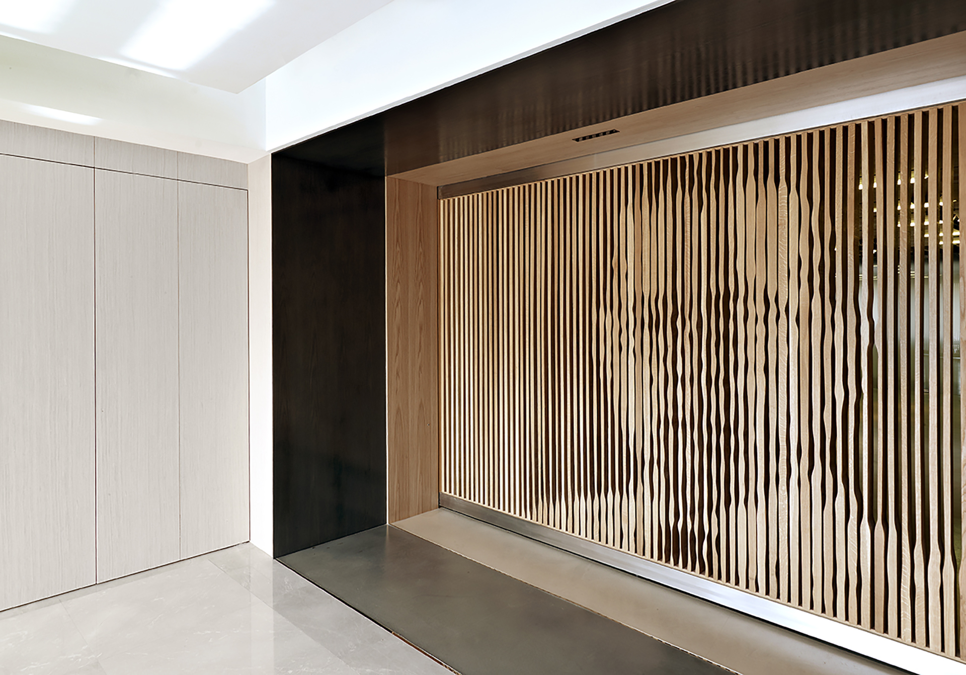洪建全先生的肖像與地標被完全融入在空間中,成為深刻又隱喻著紀念象徵,同時更直接沿伸展現洪建全先生創業及實在經營的精神。紀念空間共由600支橡木實木條雕刻製作而成:300支尺寸為4 x 15 x 240公分的橡木實木雕刻條緊密排列出牆面的故事,其餘的300支實木條則成為隔間牆、隔屏及門的立體表現。